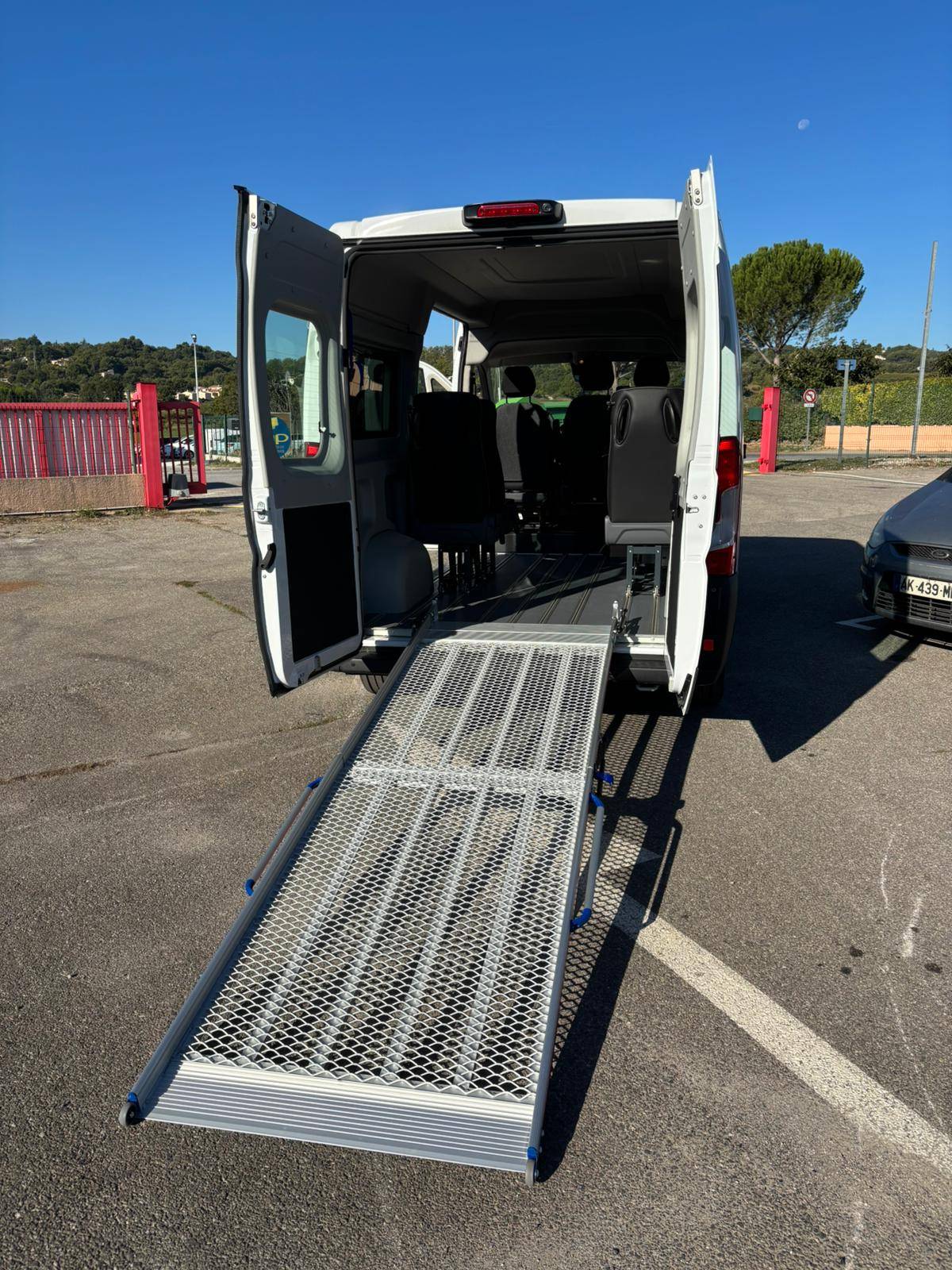 Rampe d’accès sécurisée : une rampe pratique a été installée pour faciliter la montée et la descente des passagers en fauteuil roulant. Sa conception robuste assure sécurité et stabilité lors de l’utilisation, tout en simplifiant les opérations pour l’accompagnant.