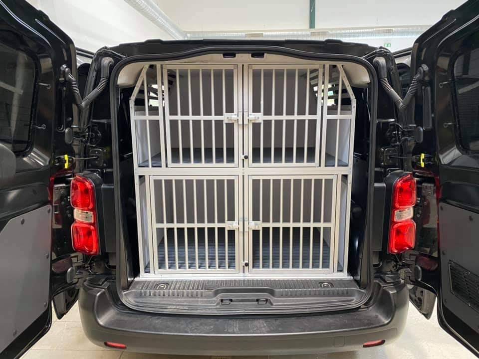 Notre aménagement intérieur ne se limite pas aux cages à chien et aux casiers de rangement. Nous prenons en compte tous les aspects nécessaires pour un véhicule cynophile performant :