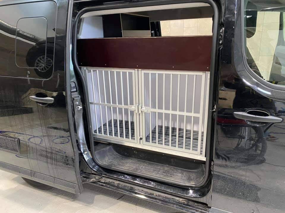 Chez Cora, nous vous proposons des solutions d'aménagement sur mesure pour transformer votre utilitaire en un véhicule cynophile complet, intégrant des cages à chien sécurisées et des casiers de rangement optimisés.