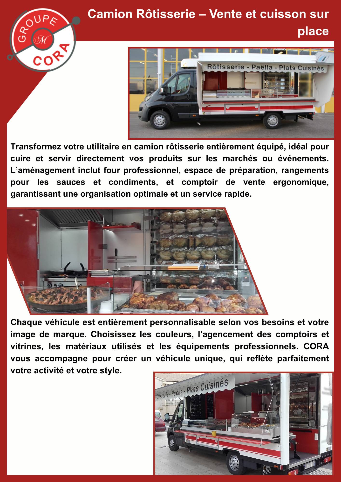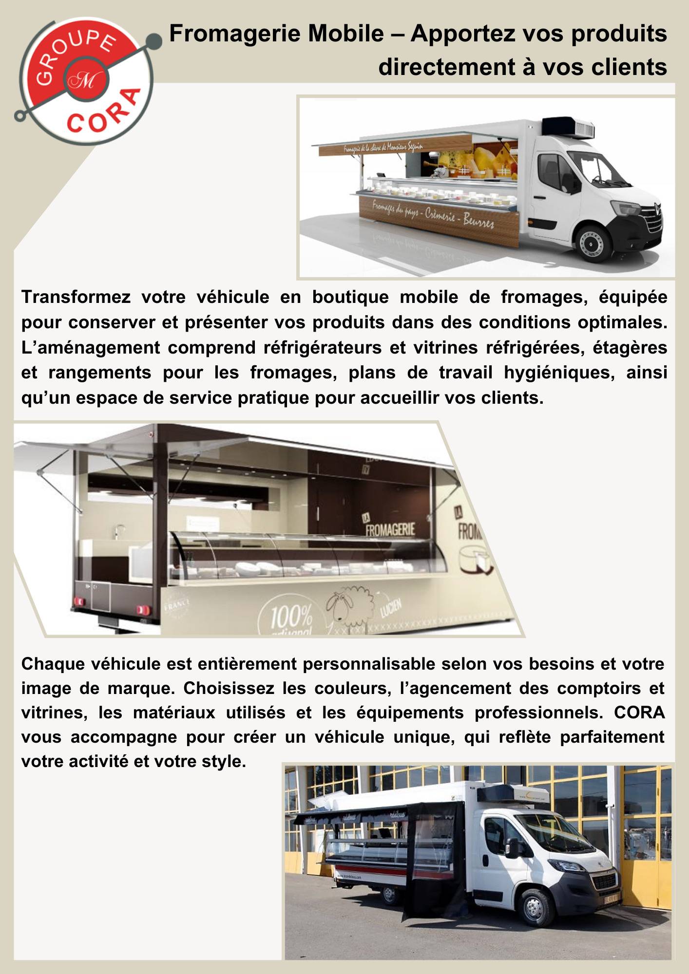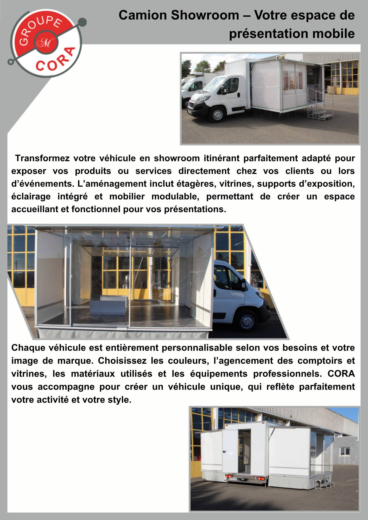 Chez Groupe CORA, nous développons notre expertise en proposant désormais l’aménagement sur mesure de véhicules utilitaires et camions pour toutes les activités commerciales itinérantes et métiers spécialisés. Que vous souhaitiez transformer votre véhicule en food truck, boutique mobile ou commerce spécialisé, notre équipe conçoit des solutions adaptées à vos besoins, à votre métier et aux contraintes de mobilité.