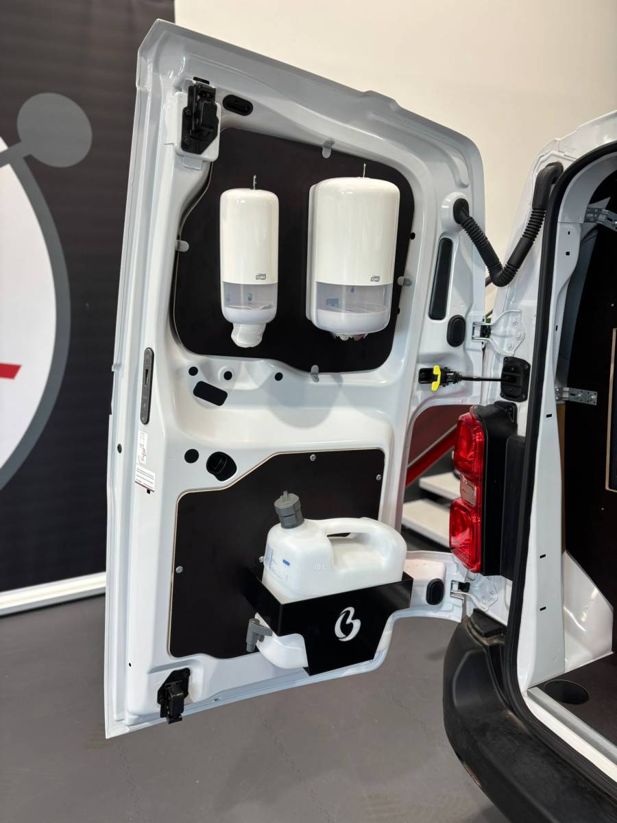 • Mise en place d’un distributeur de savon et d’un essuie-mains : un système d’hygiène embarqué afin de permettre aux utilisateurs de se laver les mains directement dans le véhicule, un atout essentiel pour les interventions techniques ou salissantes.